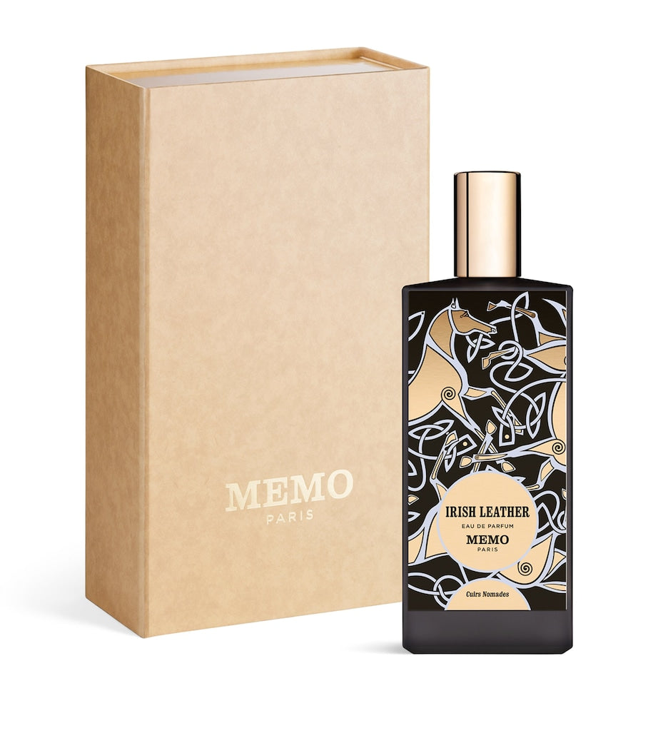 Memo Paris Irish Leather Eau de Parfum By Memo Paris is a crisp and elegant leather fragrance with green and aromatic character. It opens with juniper berry and clary sage over a bright citrus background, progresses through a heart of maté and orris, and finishes on a refined base of leather, amber, birch, and tonka.